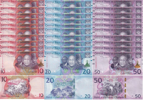 Lesotho SET 3 X 3 SETS = 9 UNC 10 20 50 Maloti 2024 2025 P New Hybrid