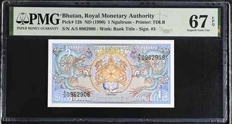 Bhutan 1 Ngultrum ND 1990 P 12 b Superb Gem UNC PMG 67 EPQ