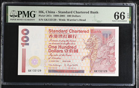 Hong Kong 100 Dollars 2000 P 287 c SCB Gem UNC PMG 66 EPQ