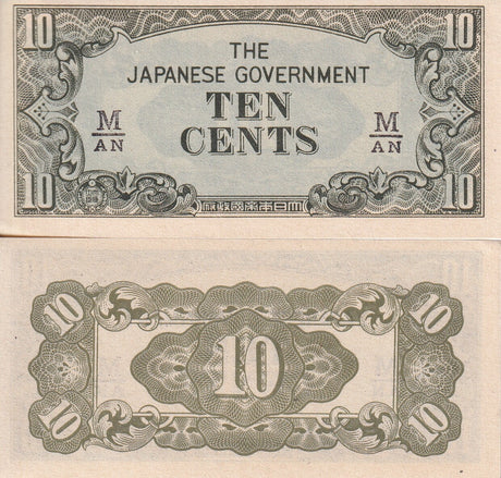 Malaya Japanese Occupation 10 Cent ND 1942 P M3b AUnc