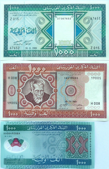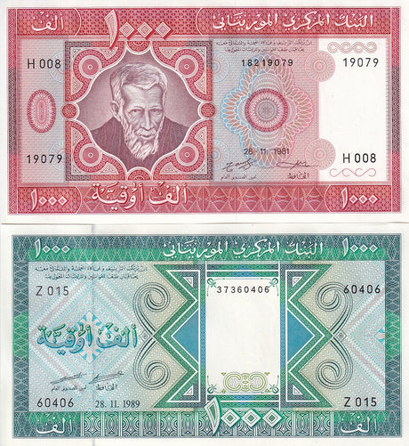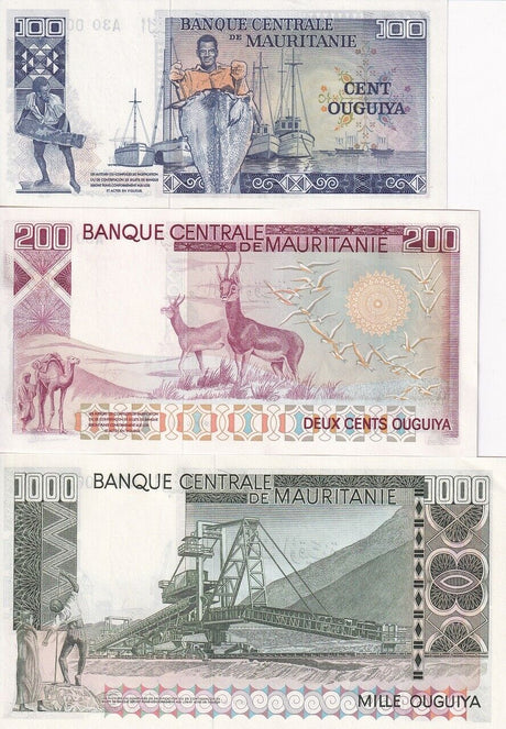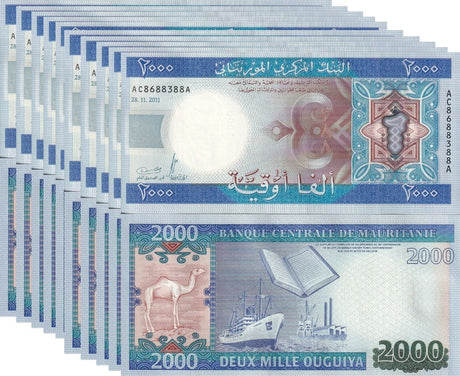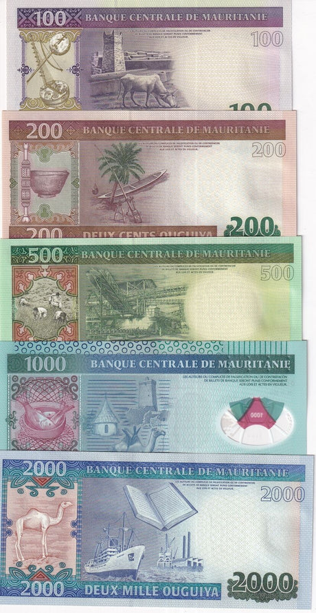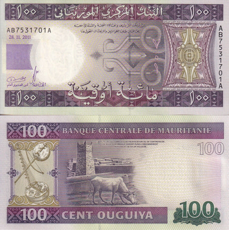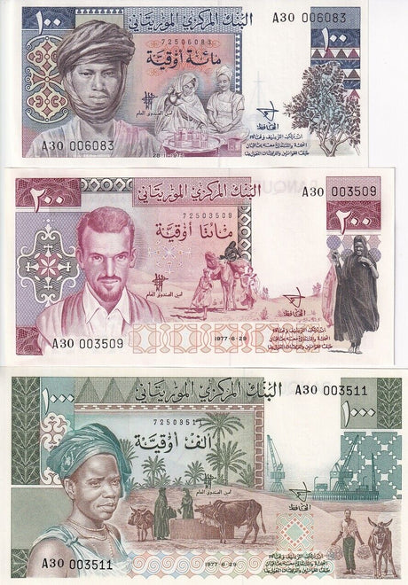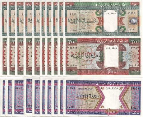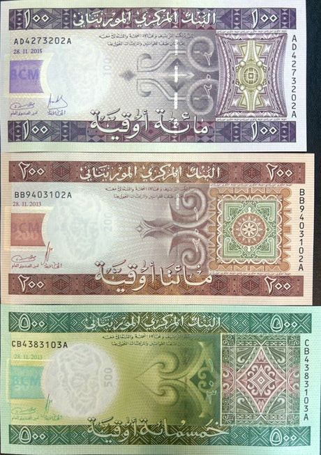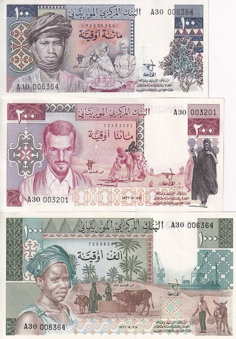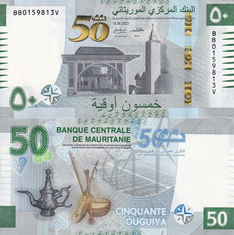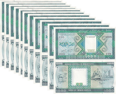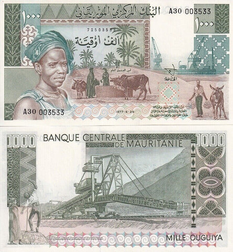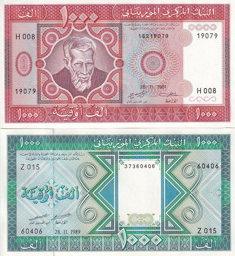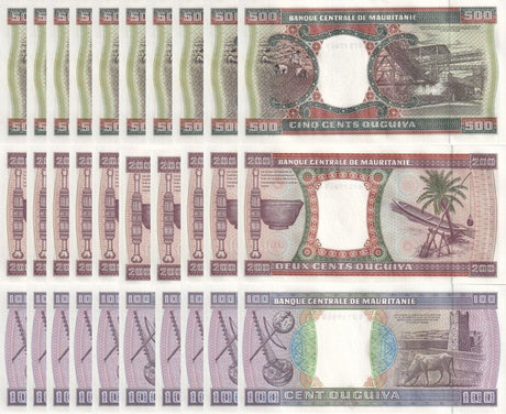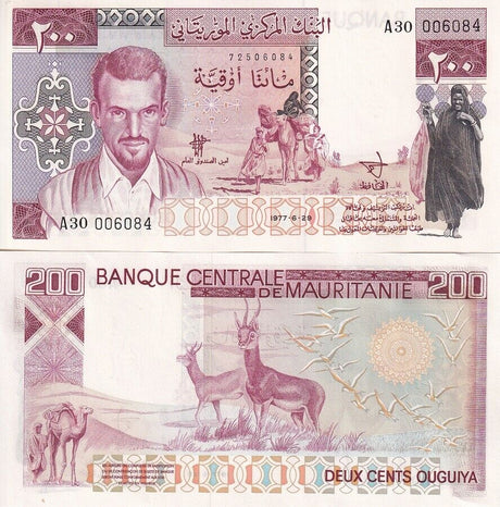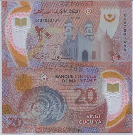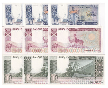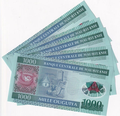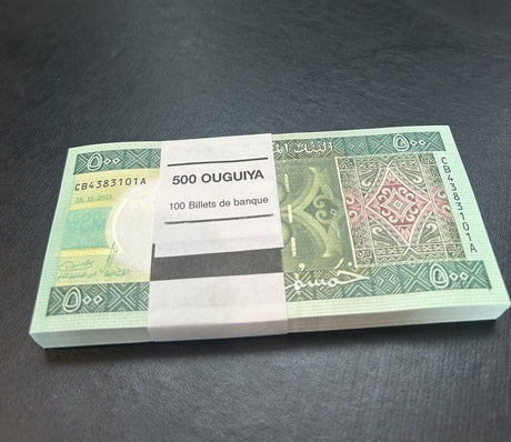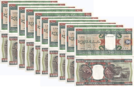 Mauritania banknotes are fascinating collectibles reflecting the rich history and cultural heritage of this Northwest African country. Issued by the Central Bank of Mauritania since 1973, these banknotes, denominated in the unique ouguiya currency, feature distinctive designs including portraits of iconic local figures, bilingual Arabic-French inscriptions, and advanced security elements like watermarks and ClearText threads. Numismatists value Mauritanian notes for their rarity, cultural significance, and historical appeal, making them popular collector's items worldwide.