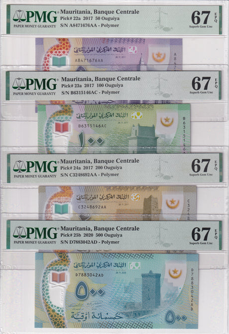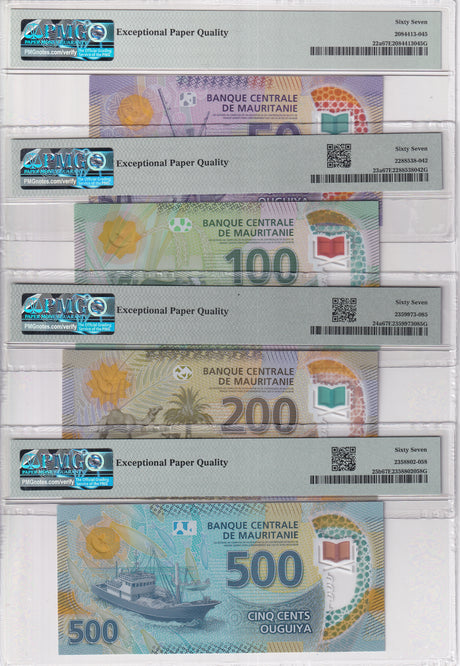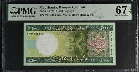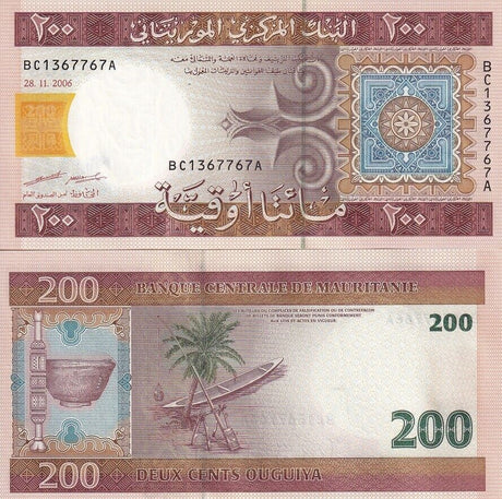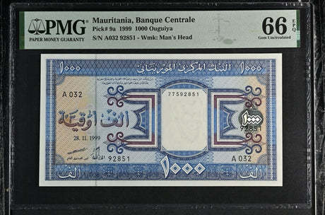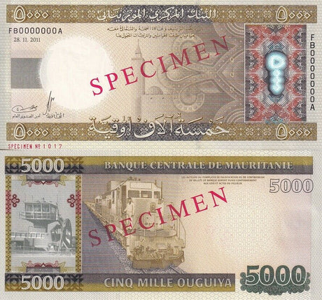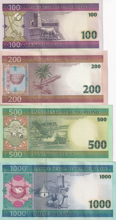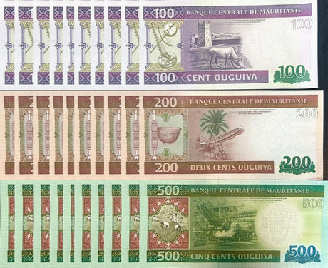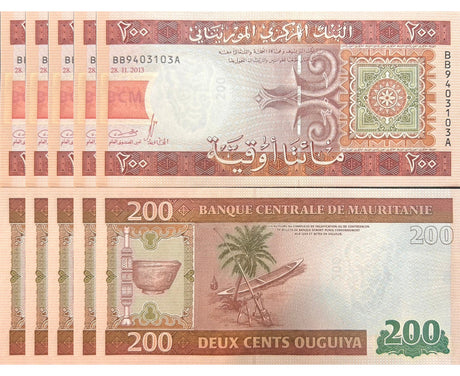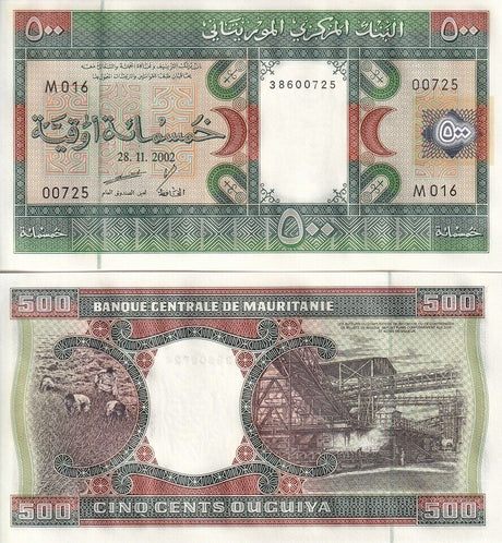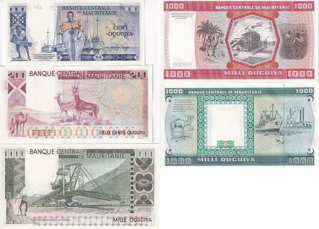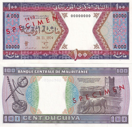 Mauritania banknotes are fascinating collectibles reflecting the rich history and cultural heritage of this Northwest African country. Issued by the Central Bank of Mauritania since 1973, these banknotes, denominated in the unique ouguiya currency, feature distinctive designs including portraits of iconic local figures, bilingual Arabic-French inscriptions, and advanced security elements like watermarks and ClearText threads. Numismatists value Mauritanian notes for their rarity, cultural significance, and historical appeal, making them popular collector's items worldwide.