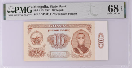 Mongolia 10 Tugrik 1981 P 45 Superb Gem UNC PMG 68 EPQ