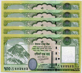 Nepal 100 Rupees 2019 P 80 UNC LOT 5 PCS