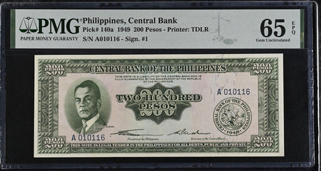 Philippines 200 Pesos 1949 P 140 a Gem UNC PMG 65 EPQ