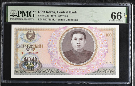Korea 100 Won 1978 P 22 a Gem UNC PMG 66 EPQ