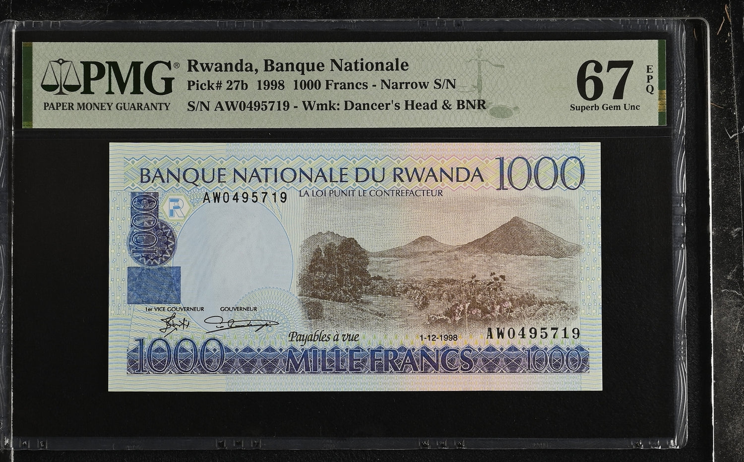 Rwanda 1000 Francs 1998 P 27 b Superb Gem UNC PMG 67 EPQ