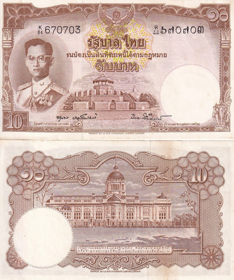 Thailand 10 Baht ND 1953 P 76 Sign 40 XF Foxing