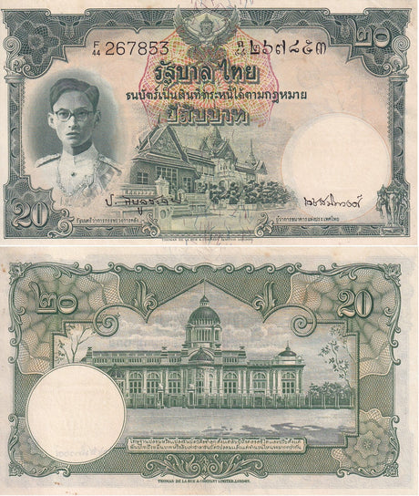 Thailand 20 Baht Nd 1948 P 72 b Young Face Black serial Sign 31 XF Yellow Tone