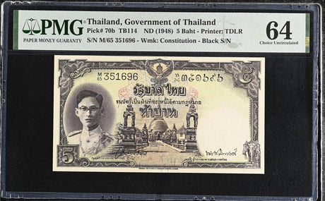 THAILAND 5 BAHT ND 1948 P 70 b Choice UNC PMG 64