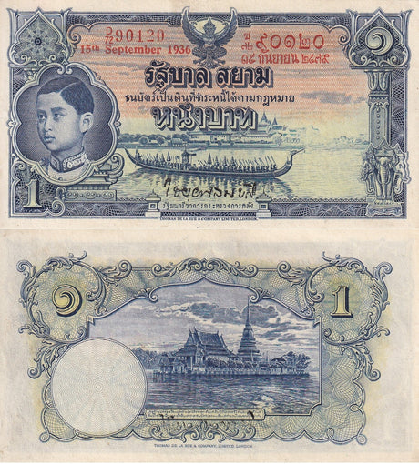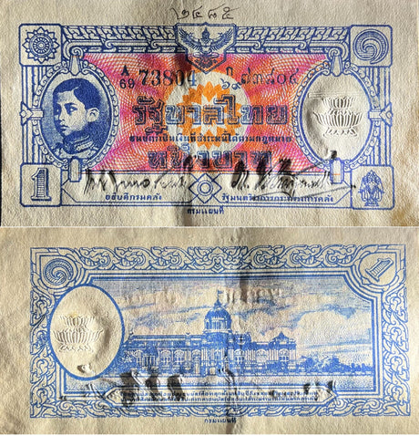 Thailand 1 Baht ND 1946 P 62A/b Crisp but XF/AU