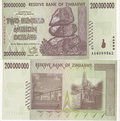Step into the captivating world of Zimbabwe's monetary history with the remarkable 2007-2008 issue Zimbabwe Dollar banknotes. Each note tells a story of resilience and economic challenges, reflecting a nation's struggle for stability. From the iconic Chiremba Balancing rocks, symbolizing the delicate balance between humanity and nature, to the intricate security features like watermarks, security threads, and color-shifting inks, these banknotes are a testament to Zimbabwe's rich heritage.