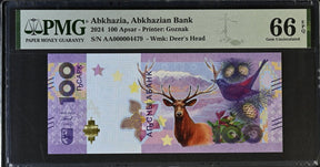 ABKHAZIA 100 Apsar 2024 Moose Gem UNC PMG 66 EPQ is backordered and will ship as soon as it is back in stock.