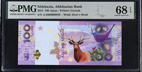 ABKHAZIA 100 Apsar 2024 Moose Nice # AA 000000949 Superb Gem UNC PMG 68 EPQ NR is backordered and will ship as soon as it is back in stock.