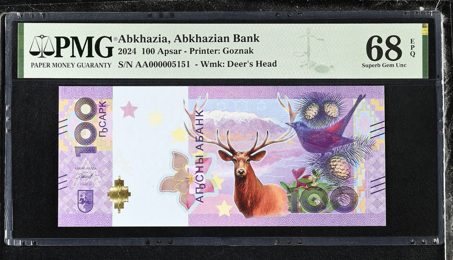 ABKHAZIA 100 Apsar 2024 Moose Nice # AA 000005151 Superb Gem UNC PMG 68 EPQ NR