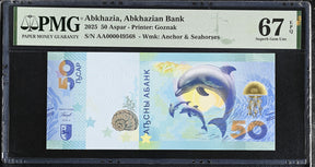 ABKHAZIA 50 Apsar 2025 AA Dolphin Superb Gem UNC PMG 67 EPQ