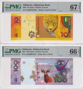 ABKHAZIA Set 2; 10 100 Apsar 2024 Leopard Moose Superb Gem UNC PMG 66 67 EPQ is backordered and will ship as soon as it is back in stock.