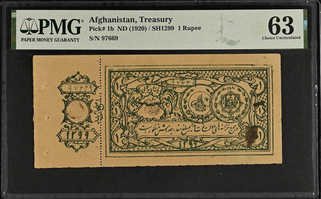 Afghanistan 1 Rupee ND 1920 P 1 b Counterfoil Included Ink Choice UNC PMG 63