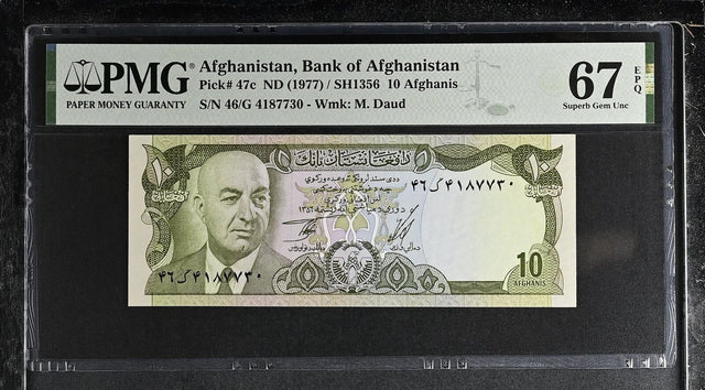 Afghanistan 10 Afghanis ND 1977 SH 1356 P 47 c Superb Gem UNC PMG 67 EPQ