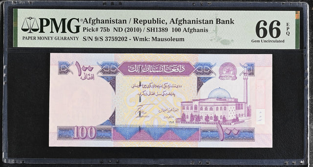 Afghanistan 100 Afghanis ND 2010 SH 1389 P 75 b Gem UNC PMG 66 EPQ