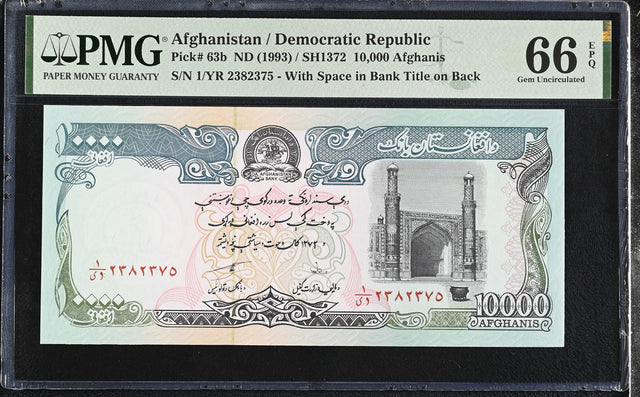 Afghanistan 10000 Afghanis ND 1993 P 63 b Gem UNC PMG 66 EPQ