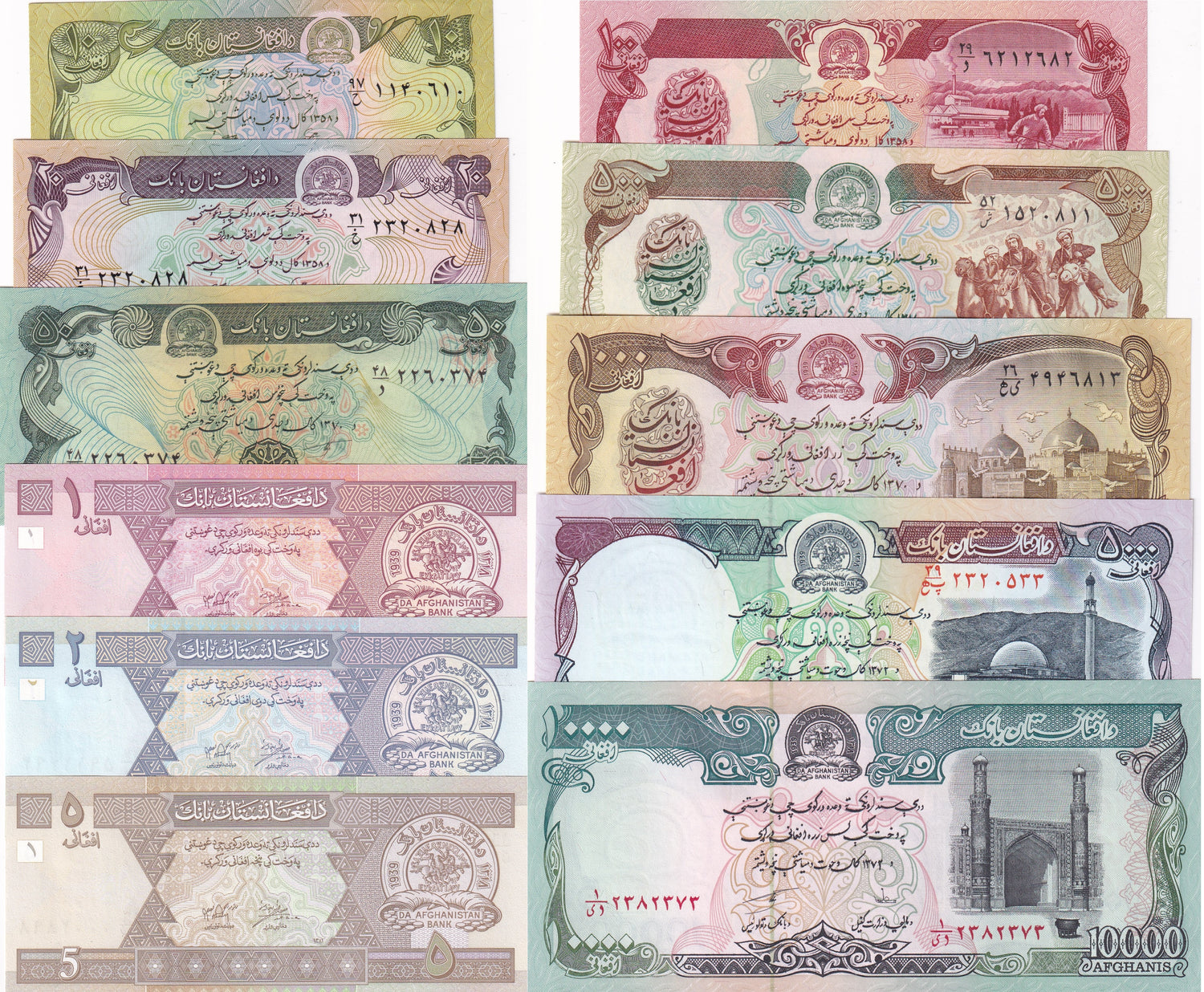 Afghanistan Set 11 UNC 1 2 5 10 20 - 10000 Afghanis P 55 56 57 - 63 64 65 66
