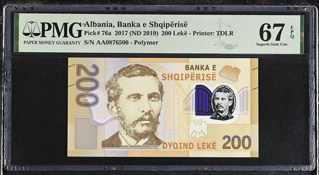 Albania 200 Leke 2017 Polymer P 76 a Superb Gem UNC PMG 67 EPQ