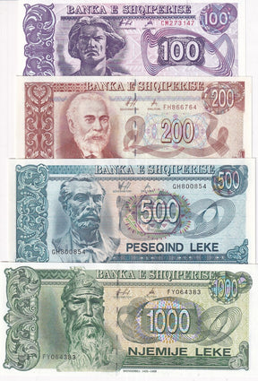 Albania Set 4 Pcs 100 200 500 1000 Leke 1996 P 55 P 59 P 60 P 61 UNC is backordered and will ship as soon as it is back in stock.
