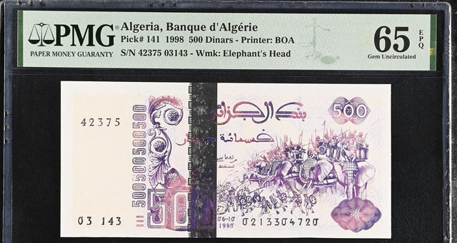 Algeria 500 Dinars 1998 P 141 Gem UNC PMG 65 EPQ