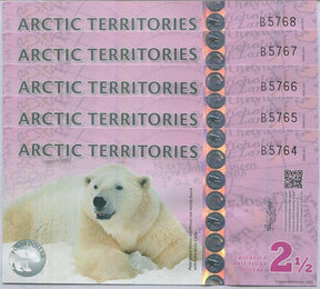 Arctic Territories 2.5 Dollar 2013 Polymer Polar Bear UNC LOT 5 PCS