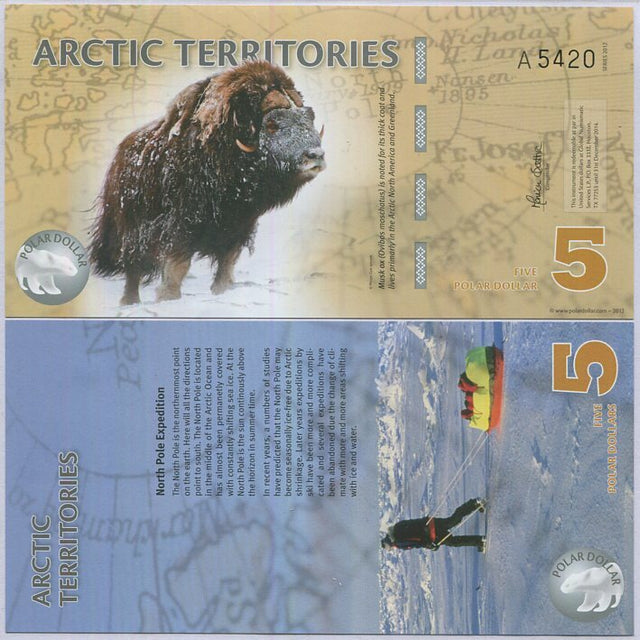 Arctic Territories 5 Dollars 2012 POLYMER MUSK UNC