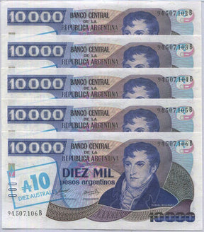 Argentina 10 Australes On 10000 Pesos ND 1985 P 322 d AUnc Lot 5 PCS