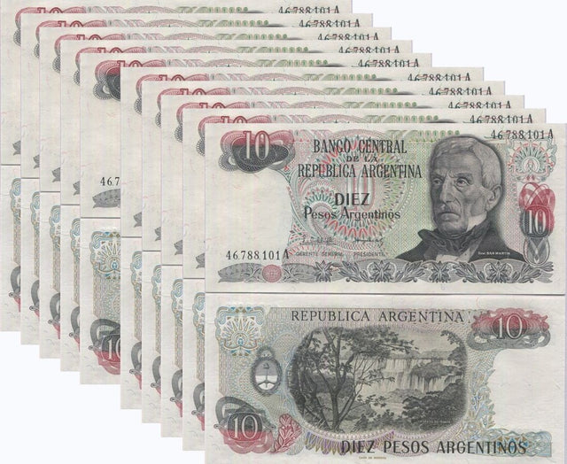 Argentina 10 Pesos ND 1983-1984 P 313 UNC LOT 10 PCS