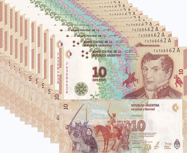 Argentina 10 Pesos ND 2016 P 360 Series A UNC LOT 10 PCS