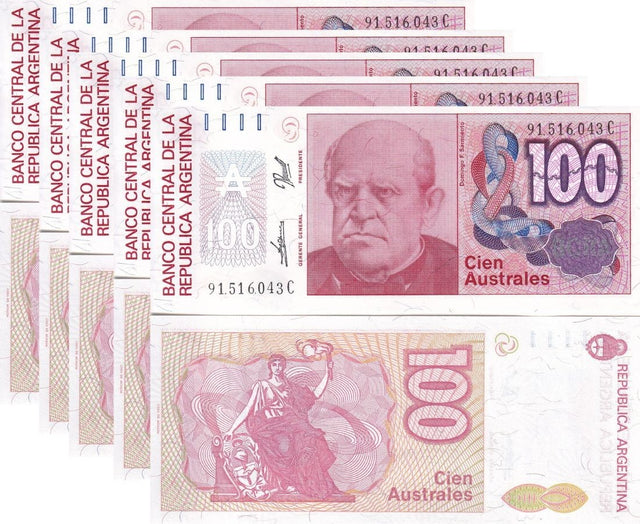 Argentina 100 Australes 1985 P 327 c UNC LOT 5 PCS
