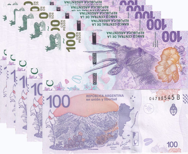 Argentina 100 Pesos 2018 Random Suffix P 363A UNC LOT 5 PCS