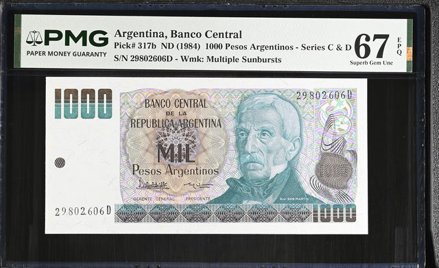 Argentina 1000 Pesos Argentinos ND 1984 P 317 b Superb Gem UNC PMG 67 EPQ