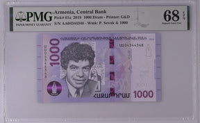Armenia 1000 Dram 2018 P 61 a Superb Gem UNC PMG 68 EPQ
