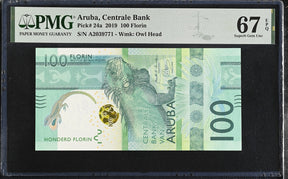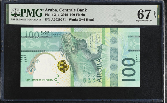 Aruba 100 Florins 2019 P 24 a Iguana verde Superb Gem UNC PMG 67 EPQ