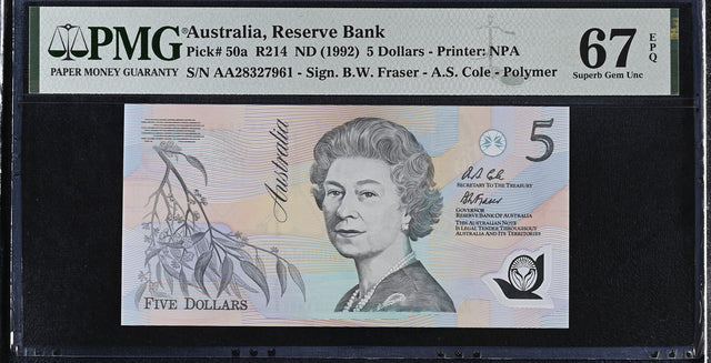 Australia 5 Dollars ND 1992 P 50 a AA Polymer Superb Gem UNC PMG 67 EPQ