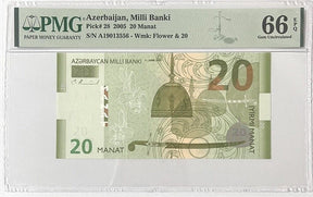 Azerbaijan 20 Manat 2005 P 28 Prefix A Gem UNC PMG 66 EPQ