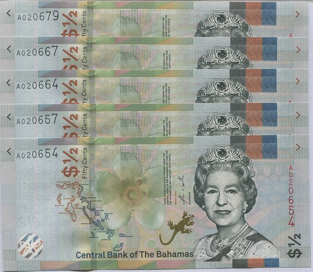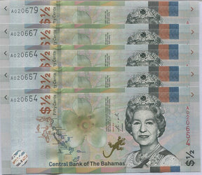 Bahamas 1/2 Dollar 2019 P 76Aa UNC LOT 5 PCS