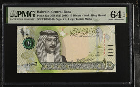 Bahrain 10 Dinars 2006 ND 2016 P 33 a Choice UNC PMG 64 EPQ