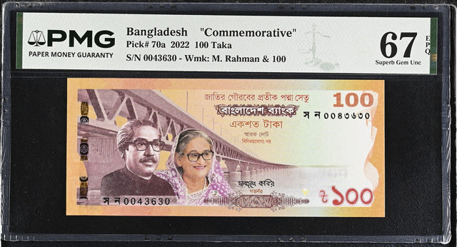 Bangladesh 100 Taka 2022 Commemorative P 70 a Superb Gem UNC PMG 67 EPQ