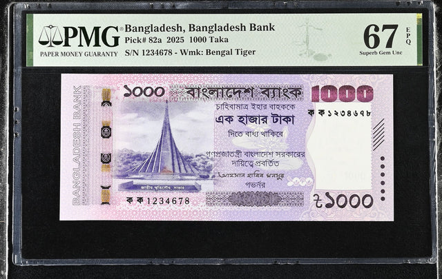Bangladesh 1000 Taka 2025 P 82 a NICE 1234-678 Superb Gem UNC PMG 67 EPQ
