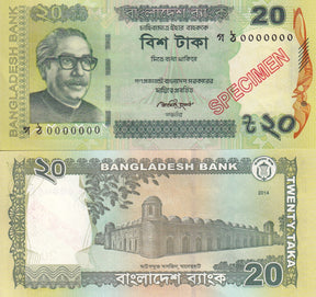 Bangladesh 20 Taka 2014 P 55A Specimen UNC