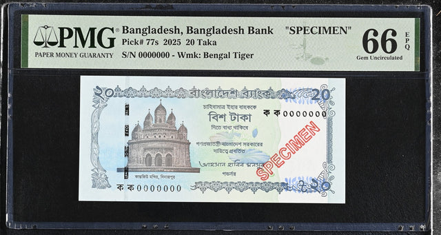 Bangladesh 20 Taka 2025 P 77 s Specimen Gem UNC PMG 66 EPQ