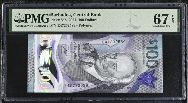 Barbados 100 Dollars 2024 Polymer P 85 b Superb Gem UNC PMG 67 EPQ TOP POP