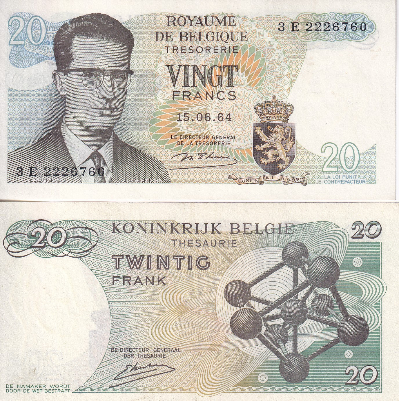 Belgium 20 Francs 1964 P 138 AUnc little TONE