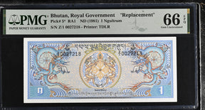 Bhutan 1 Ngultrum ND 1981 P 5* Replacement Gem UNC PMG 66 EPQ